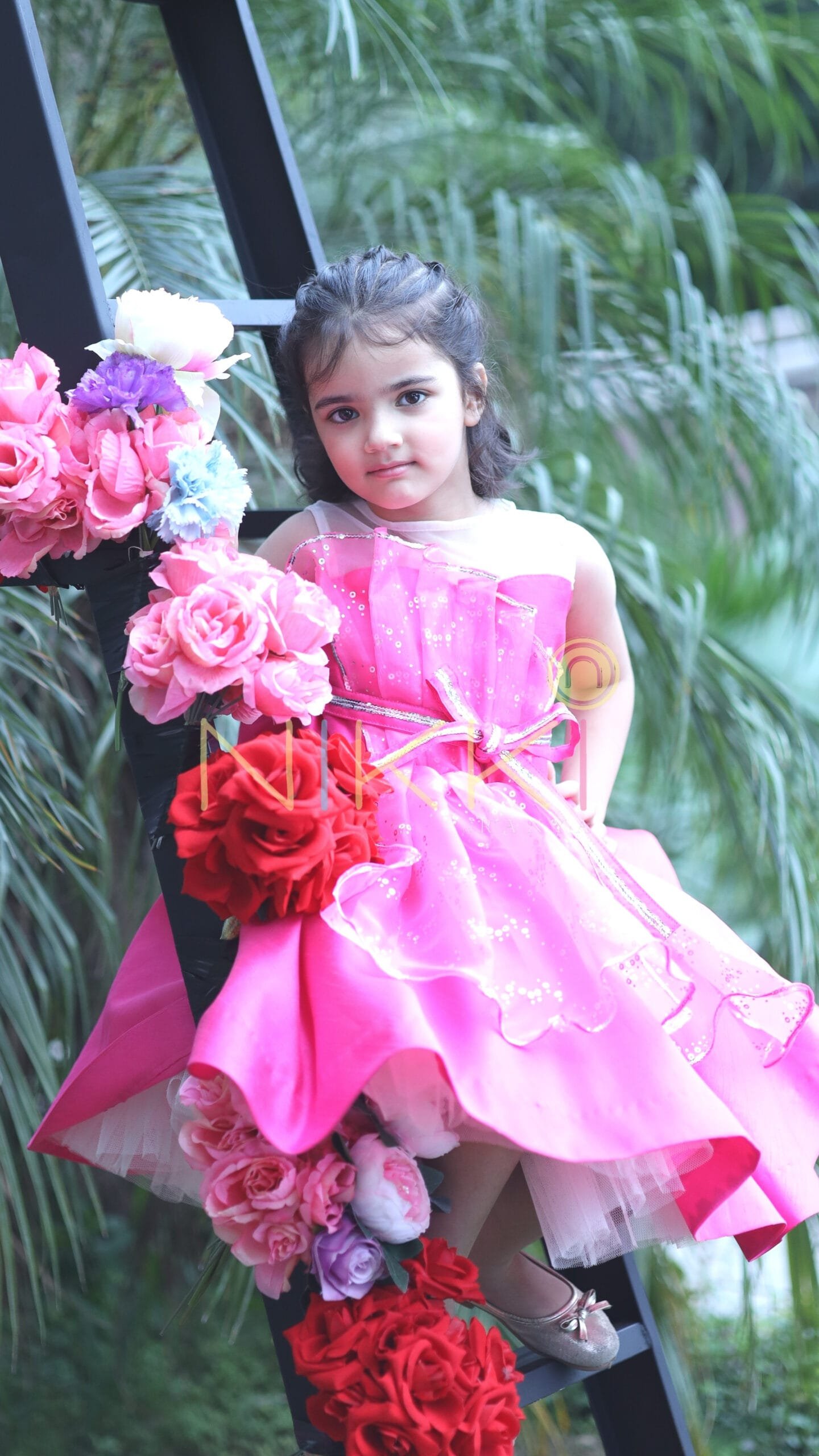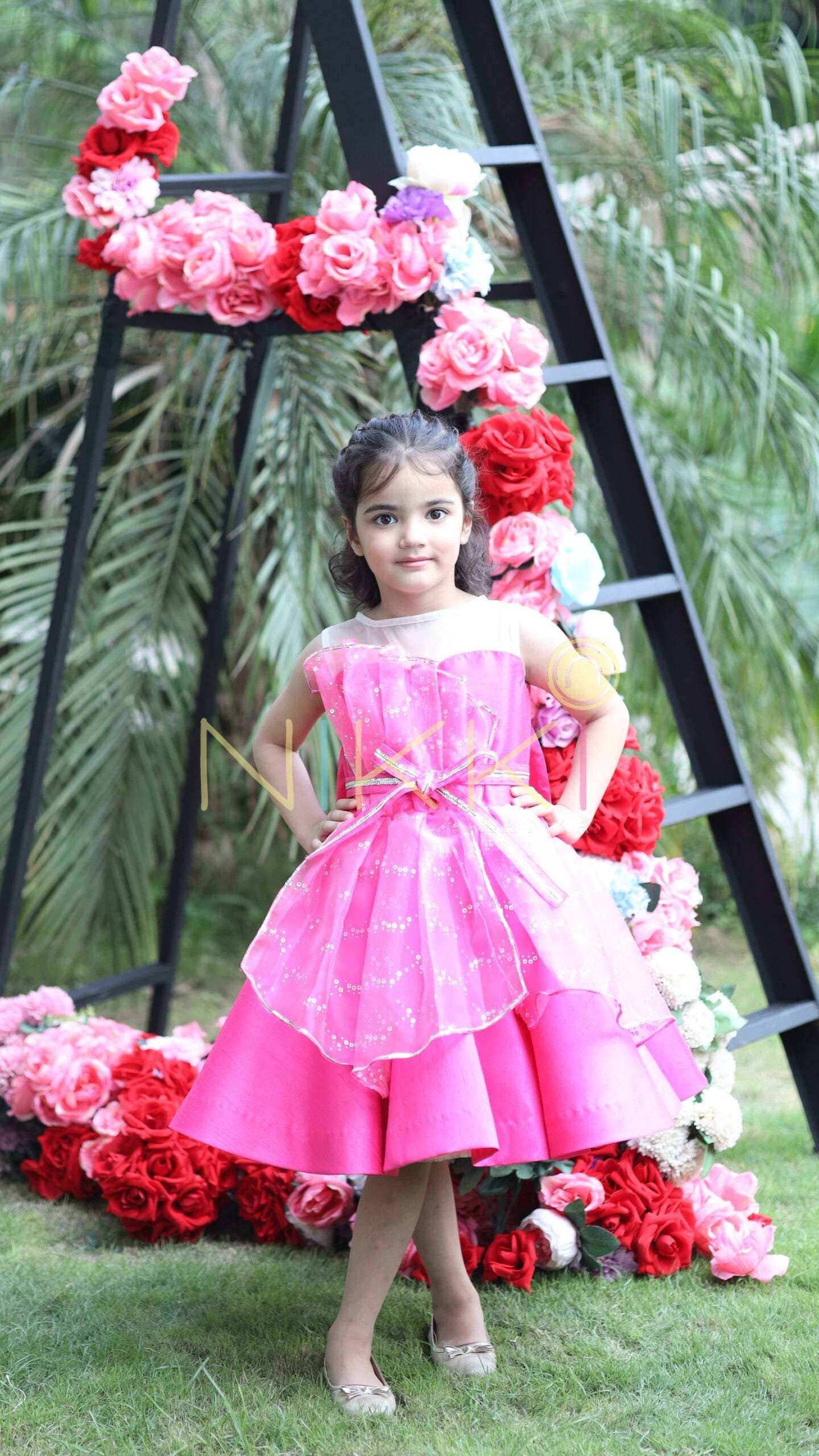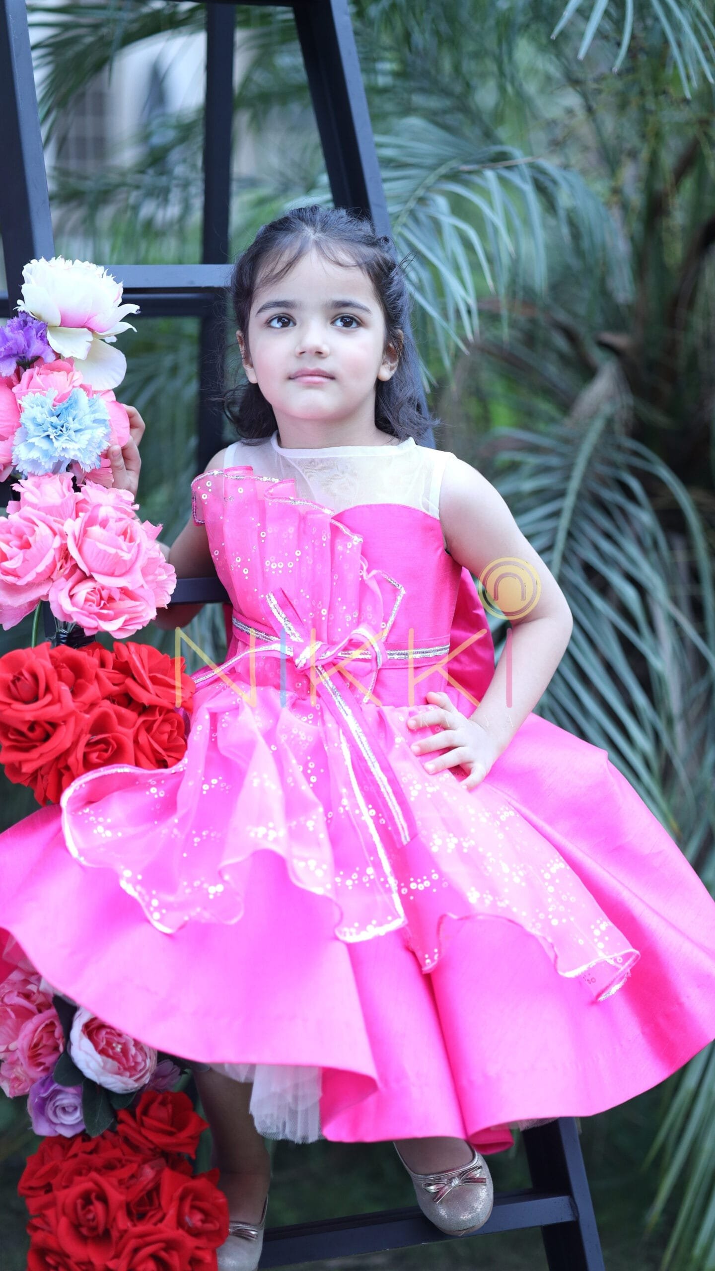 A design right out of a girl’s dream! All pink, glittery and ribbons? Yes, but more so, it’s bold, chic and stylish! A dress that looks so charming that its creation is a closely guarded secret at our workshop. The body is bubblegum pink silk with an asymmetric, embellished organza panels that’s reminiscent of the silver foil inside a candy wrap. A bedazzled silver and pink ribbon belt around the waist adds an extra fun flair. Satisfy your sweet tooth with our new